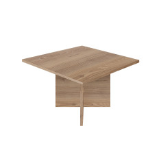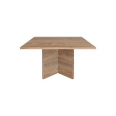 Mesa cafetera de tope cuadrado y patas entre cruzadas. Posee una cualidad atemporal que facilita acoplarla con cualquier estilo de decoración.