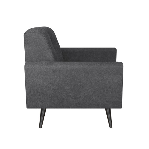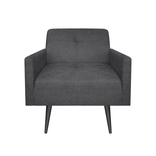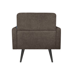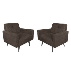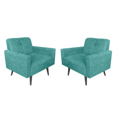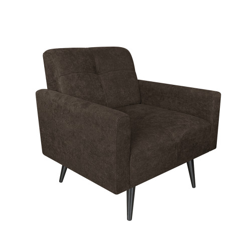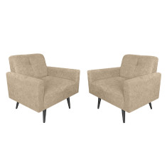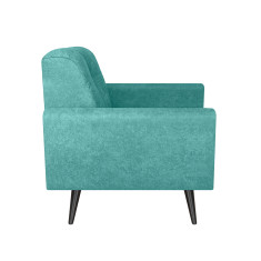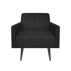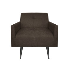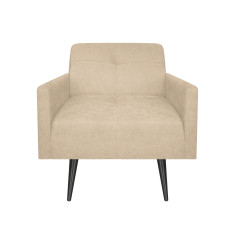 Su diseño contemporáneo hace que sea muy fácil de combinar con el resto de su mobiliario, es una poltrona baja con reposa brazos y espaldar acolchado, capitoneado al centro. Patas largas en madera colocadas en ángulo para darle un toque distintivo.