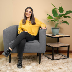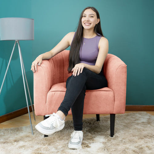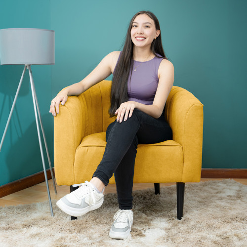 Su interior cuenta con un tapizado acolchado en forma acanalada que aporta mayor comodidad y una apariencia elegante. Sus patas largas no solo estilizan la poltrona, sino que además facilitan el proceso de limpieza de su sala, permitiéndole alcanzar con facilidad el espacio debajo del mueble.