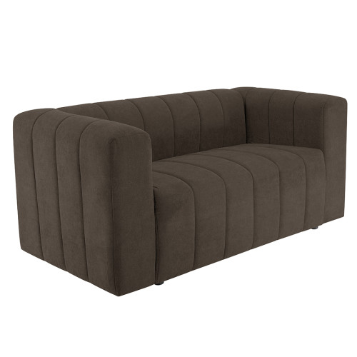 Cómodo y llamativo sofá de dos puestos. Diseño moderno, tapizado en textil acolchado en forma acanalada que no solo destaca visualmente, sino que además aporta un grado adicional de comodidad. Es un sofá de brazos altos y recueste leve que brinda una sensación de abrazo, lo cual invita a pasar un rato confortante. Combina fácilmente con cualquier estilo de ambiente, ideal para una sala, oficina e incluso un dormitorio amplio.