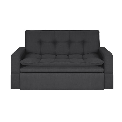Diseño clásico y elegante, con alto grado de confort. Se trata de un sofá cama de 2 puestos con 3 posiciones en su espaldar: sentado, ver tv y acostado. Fácil de manipular mediante un sistema clic clac en su espaldar y uno de arrastre para convertir en cama. Posee una colchoneta adherida en su superficie para proporcionarle mayor comodidad.