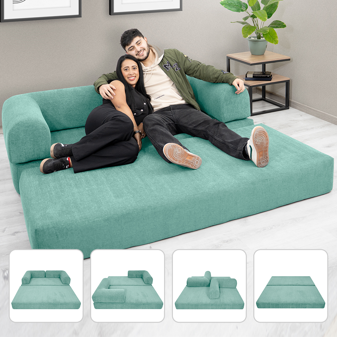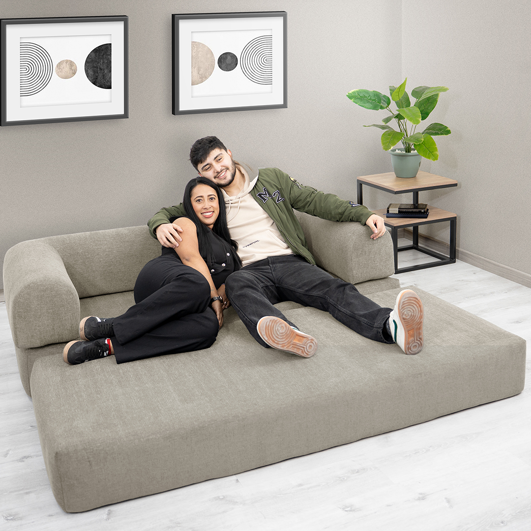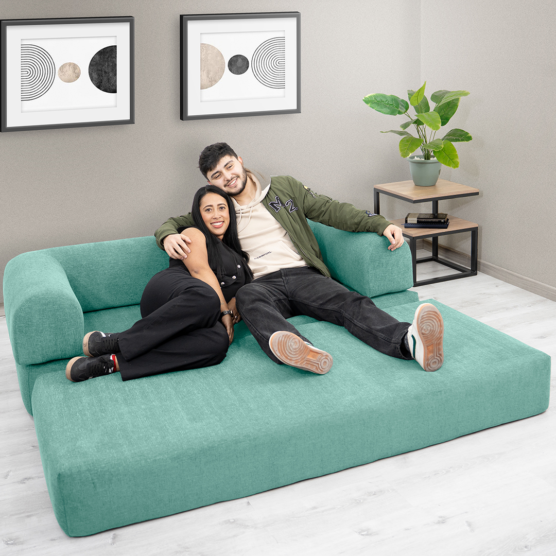 Este sofá cama cambia las reglas del juego gracias a su versatilidad. Conviértelo en sofá, sofá cama, colchón tamaño queen, utiliza los módulos como dos colchones sencillos independientes que puedes colocar en habitaciones diferentes, arma un sofá en L, las opciones son muy variadas de acuerdo a tus necesidades. Ya sea que estes trabajando, leyendo, relajándote o recibiendo visitas, encontrarás la manera adecuada de adaptar el sofá para sentirte sumamente cómodo. Ideal para estudios, dormitorios o espacios reducidos.